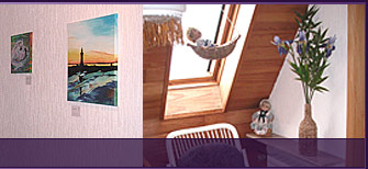 Im oberen Flur steht ein Schaukelstuhl unter einem Dachfenster. Ein sehr gemütlicher Ort zum Verweilen, Lesen oder einfach nur Entspannen.