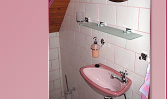 Im ersten Obergeschoß findet man ein Gäste-WC mit Toilette und kleinem Waschbecken.