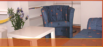 Das zweite Zimmer (Lesezimmer) verfügt über eine Schlafcouch. Außerdem finden Sie hier einen Sessel, einen Deckenfluter mit Leselampe, großzügigen Stauraum, einen kleinen Tisch und Bücherregale.