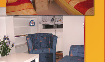 Im Obergeschoß befinden sich – zusätzlich zu dem Schlafzimmer mit Doppelbett – zwei weitere Zimmer. Eines ist mit zwei Einzelbetten ausgestattet.